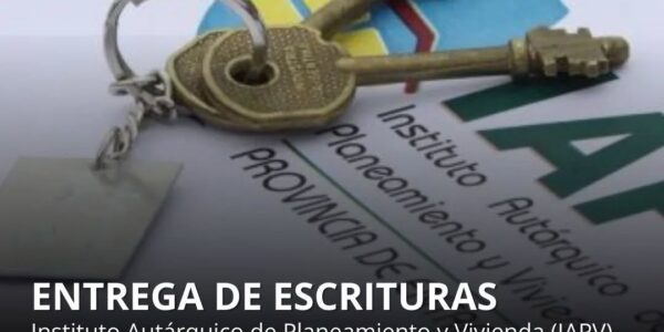 Nogoyá El IAPV informa que mañana, viernes 28 de marzo, se entregarán las escrituras a los adjudicatarios de diferentes barrios de la ciudad de Nogoyá. El acto se llevará a cabo a la hora 11.30 en la Casa de la…