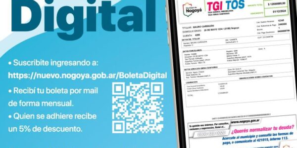 Nogoyá Ahora como forma ágil y rápida, podés adherirte al sistema de envío de boleta digital. Sumándote a la propuesta, adherís la iniciativa de despapelización que está impulsando el Municipio de Nogoyá. ¿Cómo podés hacerlo? Tenés que ingresar a nuevo.nogoya.gob.ar/BoletaDigital…