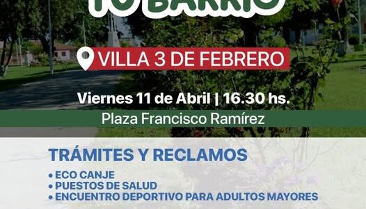 Nogoyá El viernes 11 de abril, a partir de la hora 16.30, en la Plaza Francisco Ramírez de la Villa 3 de Febrero se realizará el ciclo “La Muni en tu Barrio”. Será un encuentro de asistencia ciudadana para información…