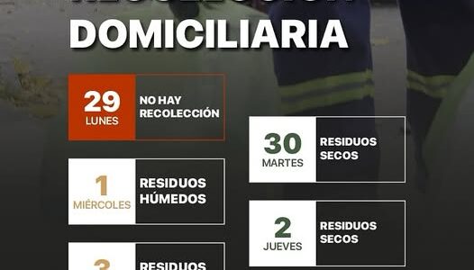 Nogoyá Desde la Dirección de Ambiente informan que por el feriado del lunes 29 de septiembre, San Miguel Arcángel (Patrono de Entre Ríos), no se prestará servicio de Recolección Domiciliaria. El servicio se restablecerá el martes 30. Se solicita a…