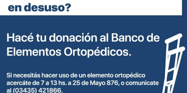 Nogoyá ¿Tenés elementos ortopédicos en desuso? Hacé tu donación al Banco de Elementos Ortopédicos. Si necesitas hacer uso de un elemento ortopédico acercate de 7 a 13 hs a 25 de Mayo 876, o comunicate al (03435) 421866. Devolvelos en…