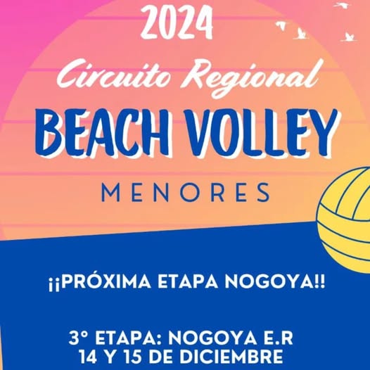 Habrá un Circuito Regional de Beach Vóley menores. La actividad será el 14 y 15 de diciembre a partir de la hora 9 en el polideportivo municipal “Cabo 1º Julio César Monzón”.