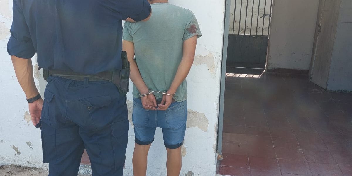 HECHO: En el día de la fecha, siendo aproximadamente las 14:30 horas, se procede a la aprehensión de una persona de sexo masculino, de 27 años de edad, el cual habría ingresado al galpón de una propiedad privada, y al ser entrevistado su dueño, manifiesta que encontrándose en su domicilio lindante, le llega una notificación de la cámara de seguridad que posee en el lugar y al observar la misma, ve que un masculino se encontraba revisando su camioneta, dirigiéndose al lugar y al ingresar forcejea con el mismo, logrando reducirlo y llamando por teléfono a esta Jefatura de Policía Dptal. Nogoya, apersonándose de forma inmediata Personal de Comisaria Zona Sur y haciéndose cargo de la situación, la persona tenía preparado una bolsa de color verde, de nailon, con varios cables, un boyo de cobre y una resistencia de calefón, pertenecientes al dueño de la propiedad. Con conocimiento e intervención de la Unidad Fiscal local, en el lugar se procedió al formal secuestro de un cuchillo de cierra, mango de madera, de 15 centímetros y de un pedazo de remera (mitad) color gris, negro y blanco, con el nombre FALL como logo, pertenencias de la persona aprehendida. Prestando colaboración funcional personal de la Div. Criminalística, quienes proceden a la toma de placas fotográficas del lugar y Personal de la Sección Antecedentes personales, a fin de extraer fichas dactilares del masculino.-