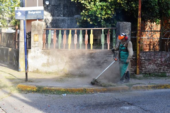 Personal municipal dependiente de la Dirección de Servicios Públicos, a cargo de Marcelo Gonzalez, trabajó en la limpieza de cordón mediante el corte de césped en zona centro. La acción apunta a acondicionar las veredas para mejorar la transitabilidad de peatones.