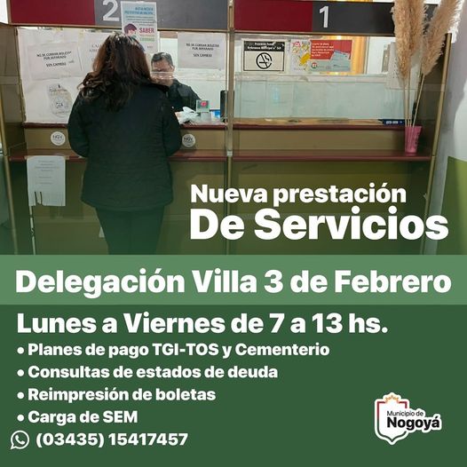 En la Delegación Municipal de la Villa 3 de Febrero se pueden acceder a una nueva prestación de servicios para los vecinos de la zona.