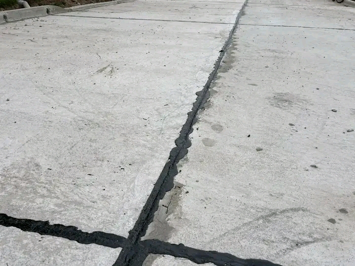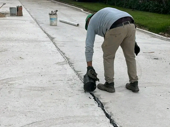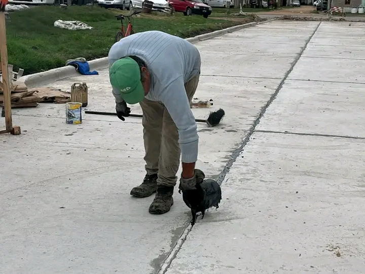Sellado de junta en la obra de pavimentación de calle Concordia.