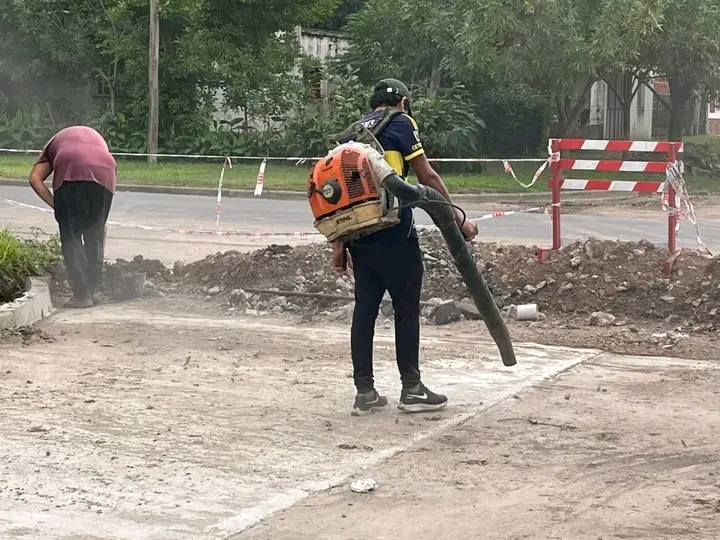 Durante la mañana de ayer, el personal municipal trabajó en las obras de mantenimiento y construcción de obras complementarias en la calle que se está pavimentando.
