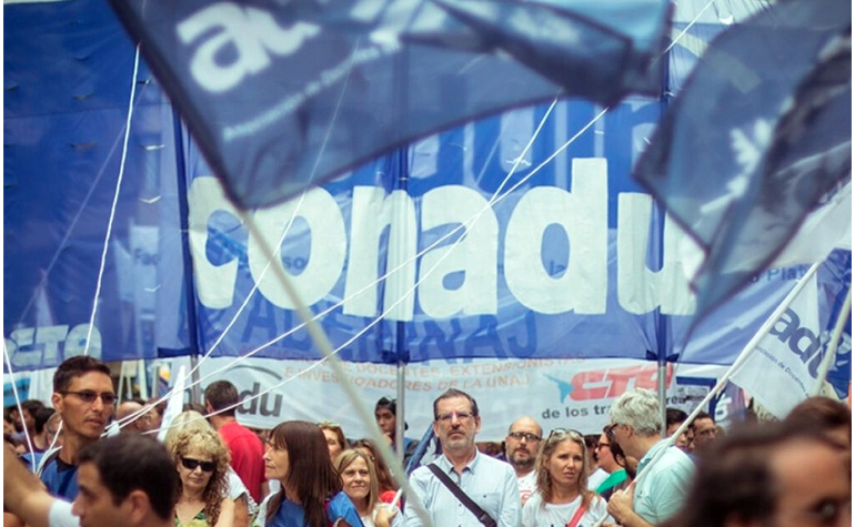 El paro cuenta con el apoyo de la Federación Nacional de Docentes Universitarios (Conadu), la Federación Nacional de Docentes, Investigadores y Creadores Universitarios (Conadu Histórica), la Federación de Docentes de las Universidades (Fedun), la Confederación de Trabajadores de la Educación (Ctera), la Asociación Gremial de Docentes de la UTN (Fagdut), la Federación Argentina del Trabajador de Universidades Nacionales (Fatun) y la Unión de Docentes Argentinos (UDA). Fuente: El Once
