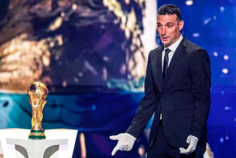 Scaloni, que protagonizó un emotivo momento al entregar la Copa del Mundo antes de que comience el sorteo, reconoció dicha situación como muy emotiva: “Tenerla en la mano es algo único”.