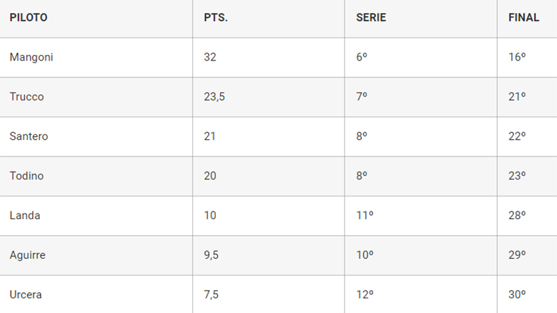 La gran temporada del entrerriano propició que sólo otros 7 pilotos arriben a San Juan con posibilidades matemáticas de alzarse con el cetro. Se trata de la cifra más baja desde 2017, cuando también fueron 8.