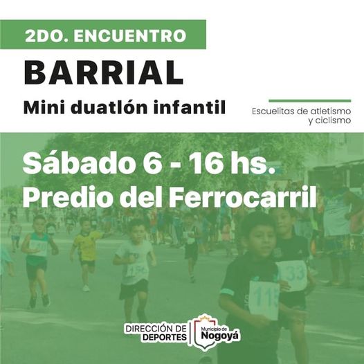 Desde la Dirección de Deportes y Recreación, a cargo de Julieta Traverso, invitaron a participar del segundo encuentro “Mini Duatlón Barrial” en las distintas categorías, que se llevará a cabo el sabado 6 de abril, a partir de la hora 16 en el predio del ferrocarril.
