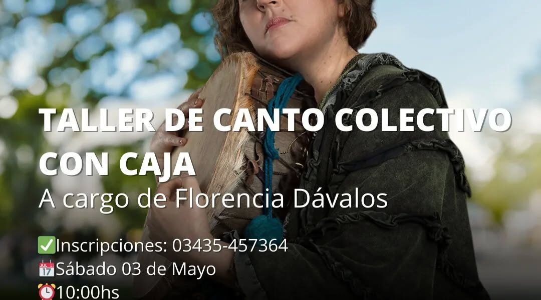 Este 3 de mayo a la hora 10 se realizará el Taller de Canto Colectivo con Caja a cargo de Florencia Dávalos. La actividad se realizará en la Asociación Cultural de Nogoyá.