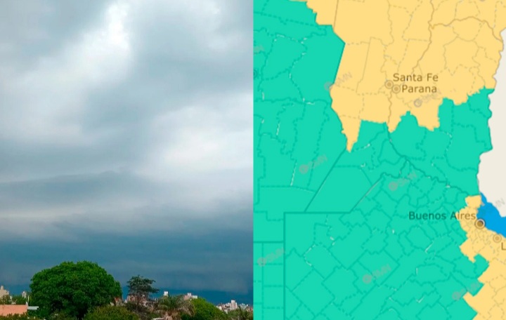 El SMN emitió una alerta amarilla por tormentas que afectarán a diez departamentos: Paraná, Diamante, La Paz, Nogoyá, Villaguay, Concordia, Federación, Federal, Feliciano y San Salvador.
